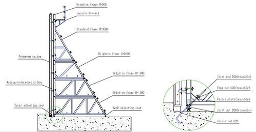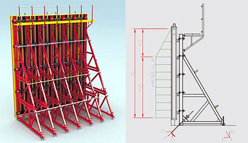 Jiaquan Single Side Supporting formwork system enable the concreting forces to be safely transferred by way of diagonal anchors in cases where it is not possible to use tie-rods in panel formwork through the concrete.